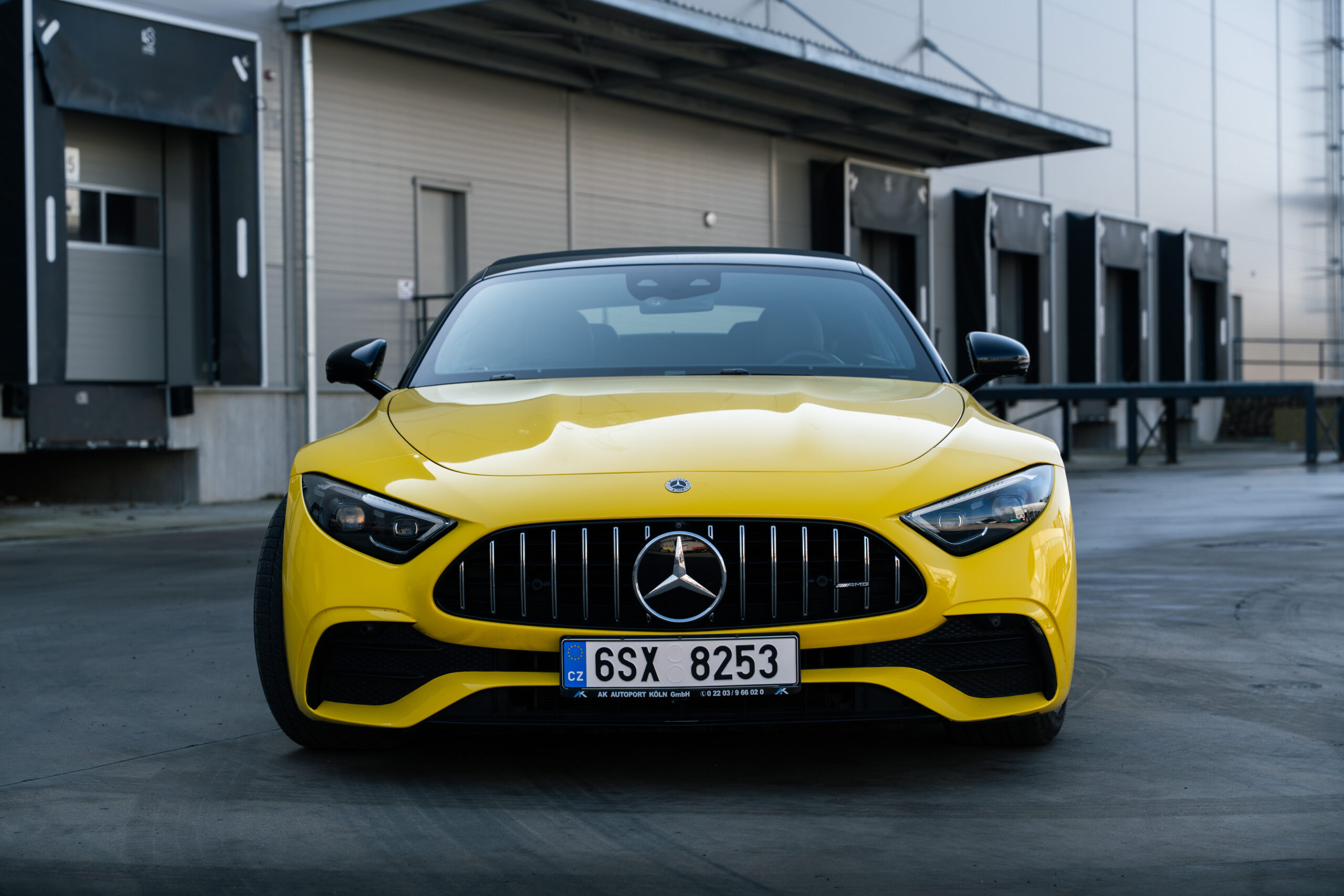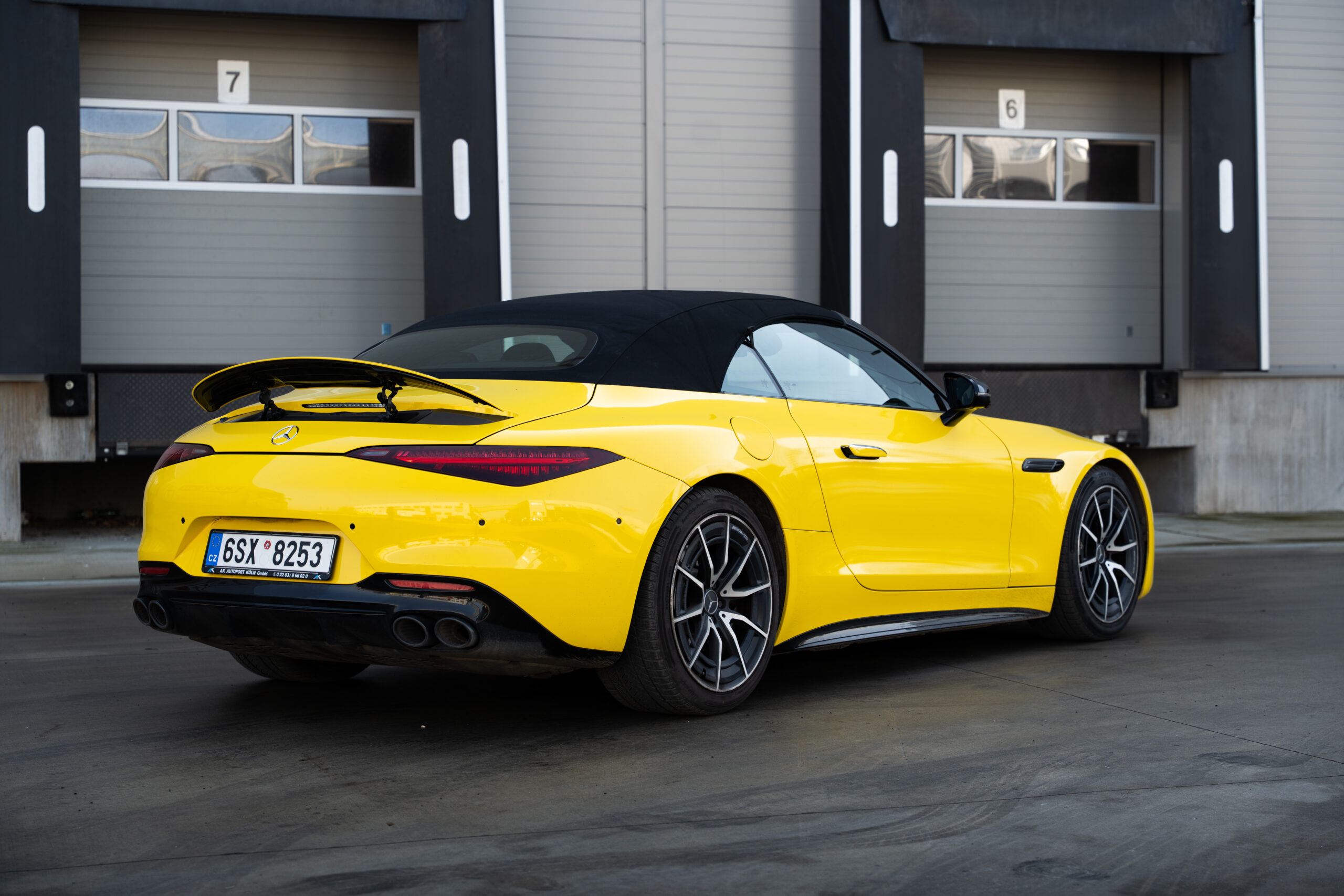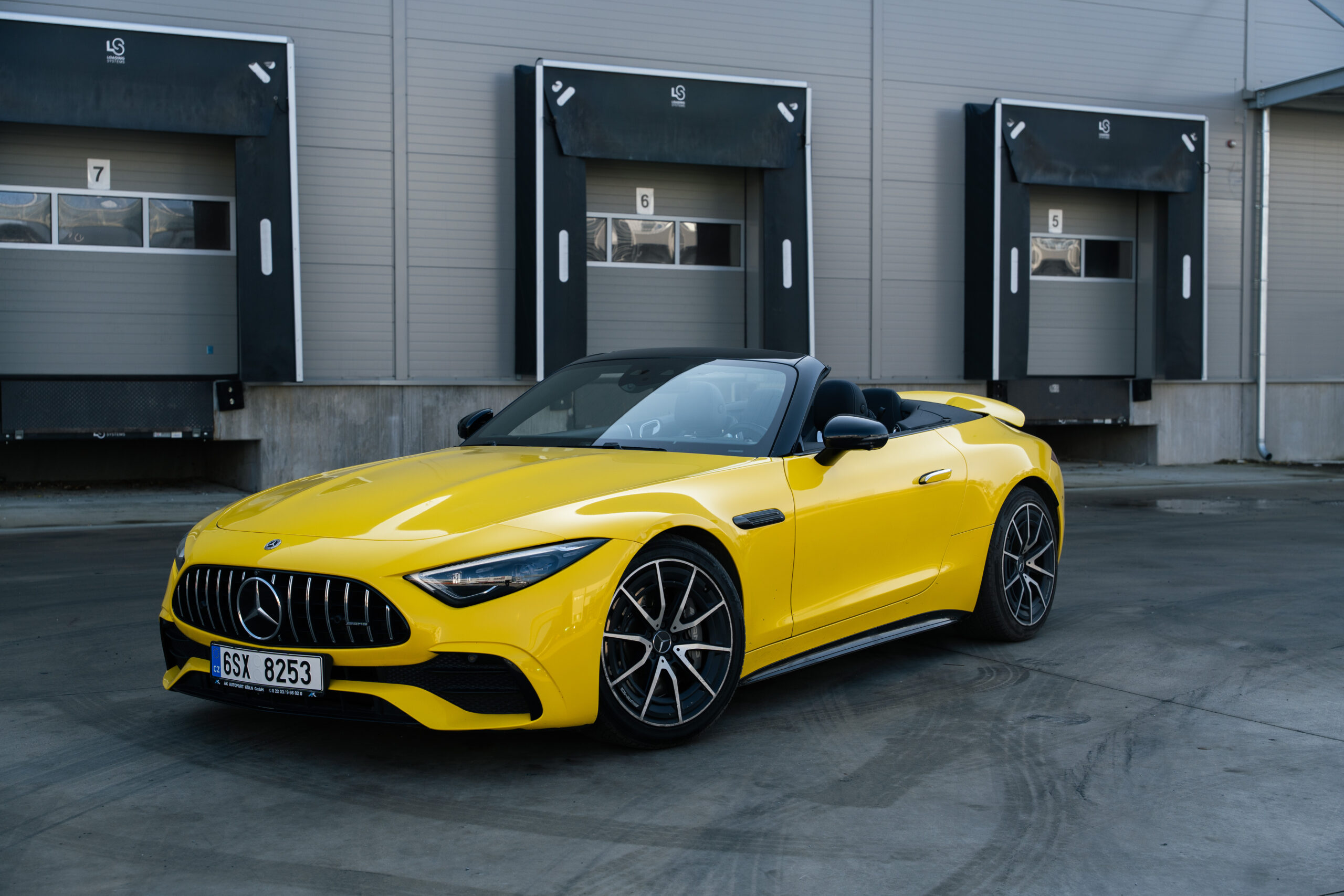 Díky výrazné žluté barvě přitahuje Mercedes SL 43 pozornost všude, kde se objeví.