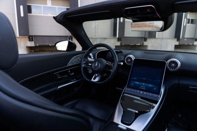 Mercedes-AMG SL 43 nabízí perfektní kombinaci výkonu, komfortu a technologické vyspělosti. Adaptivní podvozek, precizní řízení a zadní pohon zajišťují skvělou stabilitu i při sportovní jízdě. Interiér vozu je vybaven moderním infotainmentem MBUX, prémiovými materiály a komfortními sportovními sedadly.